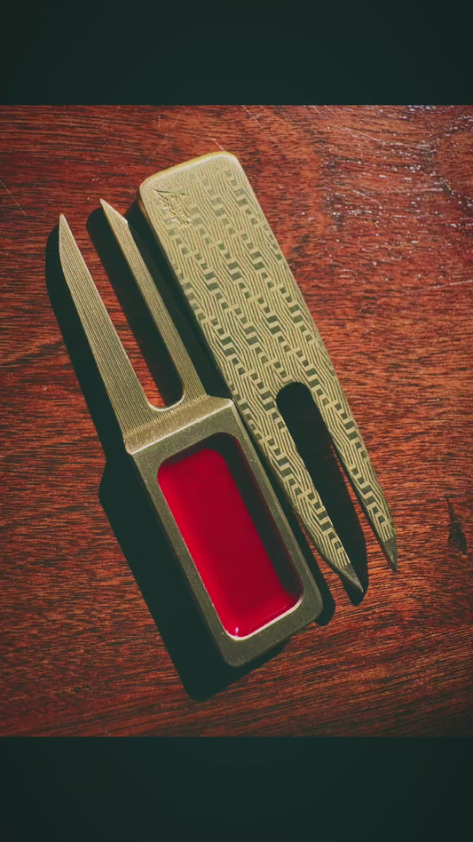 Brass Double Prong Divot Tool w. Clear Pink Fill
