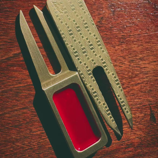Brass Double Prong Divot Tool w. Clear Pink Fill